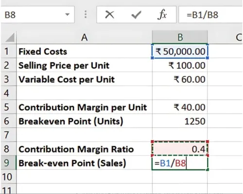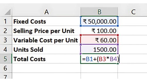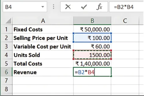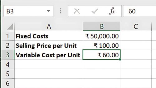 - इनपुट डेटा: एक्सेल में, अपने फिक्स्ड कॉस्ट्स (fixed costs), वैरिएबल कॉस्ट्स (variable costs), और सेलिंग प्राइस (selling price) को इनपुट करें।