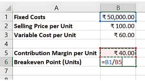स्टेप 2: यूनिट्स में ब्रेक-ईवन पॉइंट (break-even point) कैलकुलेट करें