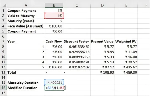 स्टेप 3: मोडीफाइड ड्यूरेशन (Modified Duration) कैलकुलेट करें