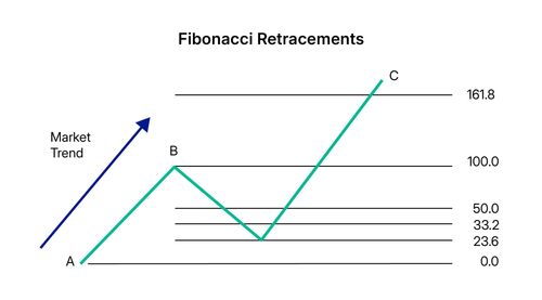 फिबोनाची रिट्रेसमेंट्स (Fibonacci retracements), प्रोजेक्शन्स (projections), और एक्सटेंशन्स (extensions) टेक्निकल एनालिसिस (technical analysis) में पॉपुलर टूल्स हैं, जिनका इस्तेमाल ट्रेडर्स संभावित सपोर्ट (support) और रेसिस्टेंस (resistance) लेवल्स को पहचानने के लिए करते हैं, जो फिबोनाची सीक्वेंस (Fibonacci sequence) पर आधारित होते हैं। ये लेवल्स 13वीं सदी के गणितज्ञ लियोनार्डो फिबोनाची द्वारा पहचानी गई संख्याओं की सीरीज से निकाले जाते हैं, और इन्हें मार्केट रिवर्सल्स, कंटिन्यूएशन पैटर्न्स, और प्रॉफिट टारगेट्स को प्रेडिक्ट करने के लिए उपयोग किया जाता है। फिबोनाची सीक्वेंस प्रकृति में प्रचलित है, और ऐसा माना जाता है कि इसके रेशियो मार्केट बिहेवियर को प्रभावित करते हैं।