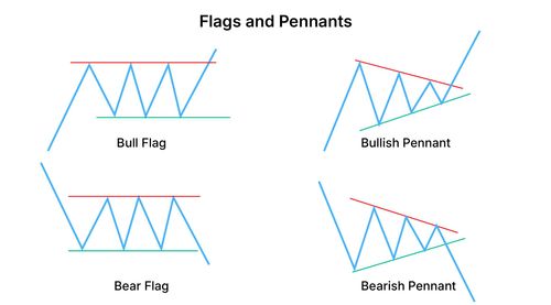 - फ्लैग्स और पेनेंट्स: शॉर्ट-टर्म पैटर्न जो एक संक्षिप्त समेकन अवधि के बाद पिछले ट्रेंड के जारी रहने का संकेत देते हैं।