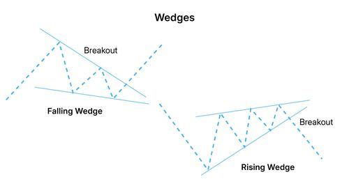 - वेजेस: राइजिंग और फॉलिंग वेजेस यह सुझाव देते हैं कि एक रिवर्सल आसन्न है, जिसमें कीमत वेज के विपरीत दिशा में ब्रेकआउट करने की संभावना है।