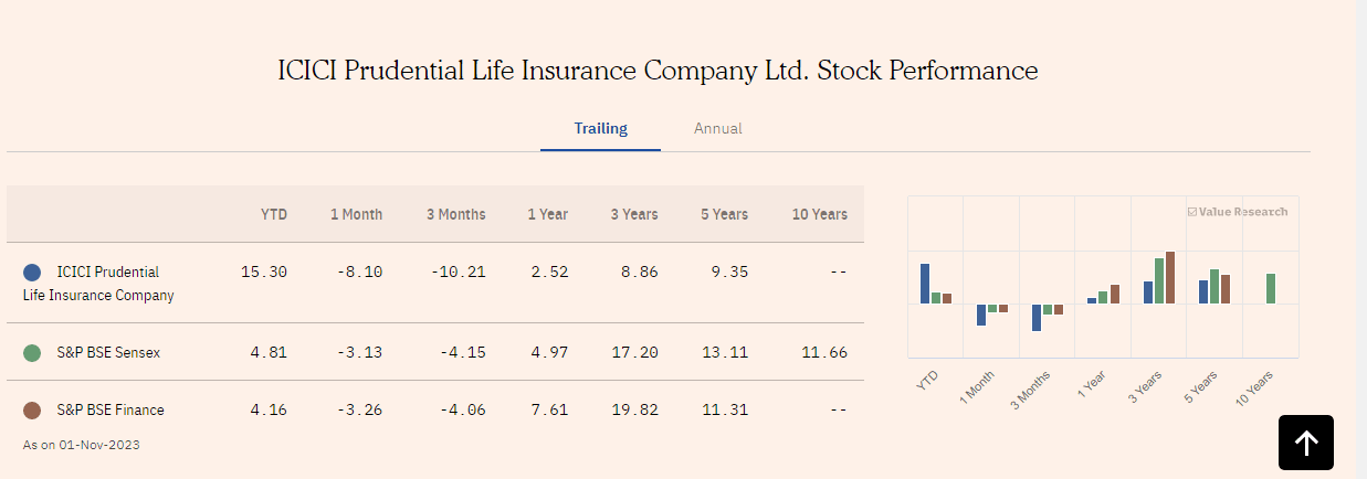 - As of 1st November 2023, the 3-year trailing returns from ICICI Pru's stocks stood at 8.86%.