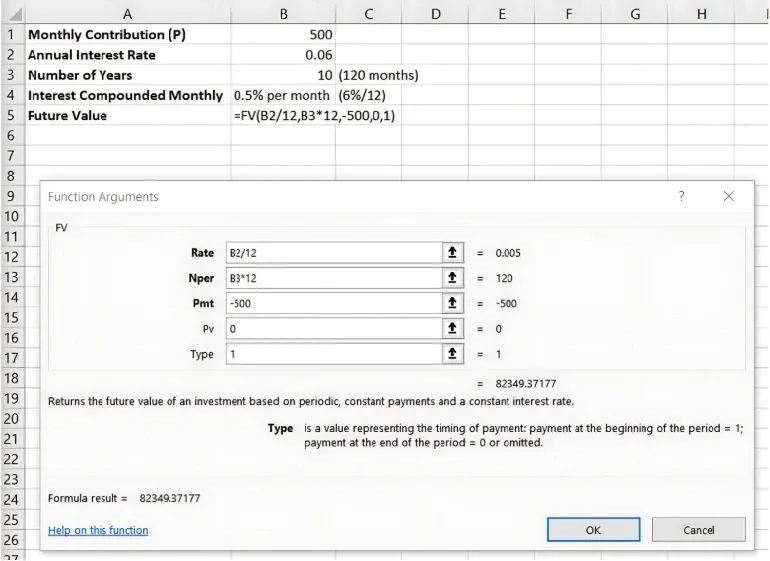 Excel’s FV function makes calculating future value easy by automating the formula for both ordinary annuities and annuities due.