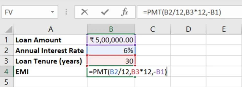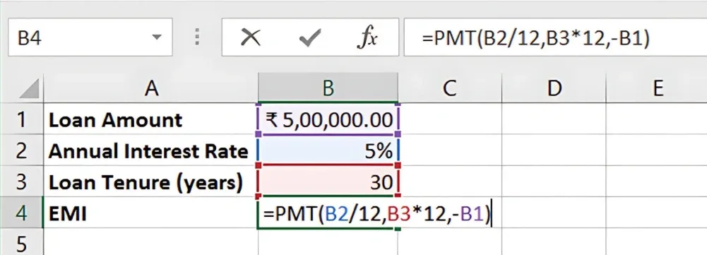 Excel’s PMT function simplifies the calculation of EMI, helping you assess home loan affordability.