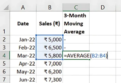 Moving averages help smooth out short-term fluctuations, revealing long-term trends. To calculate a 3-month moving average in Excel, use:
