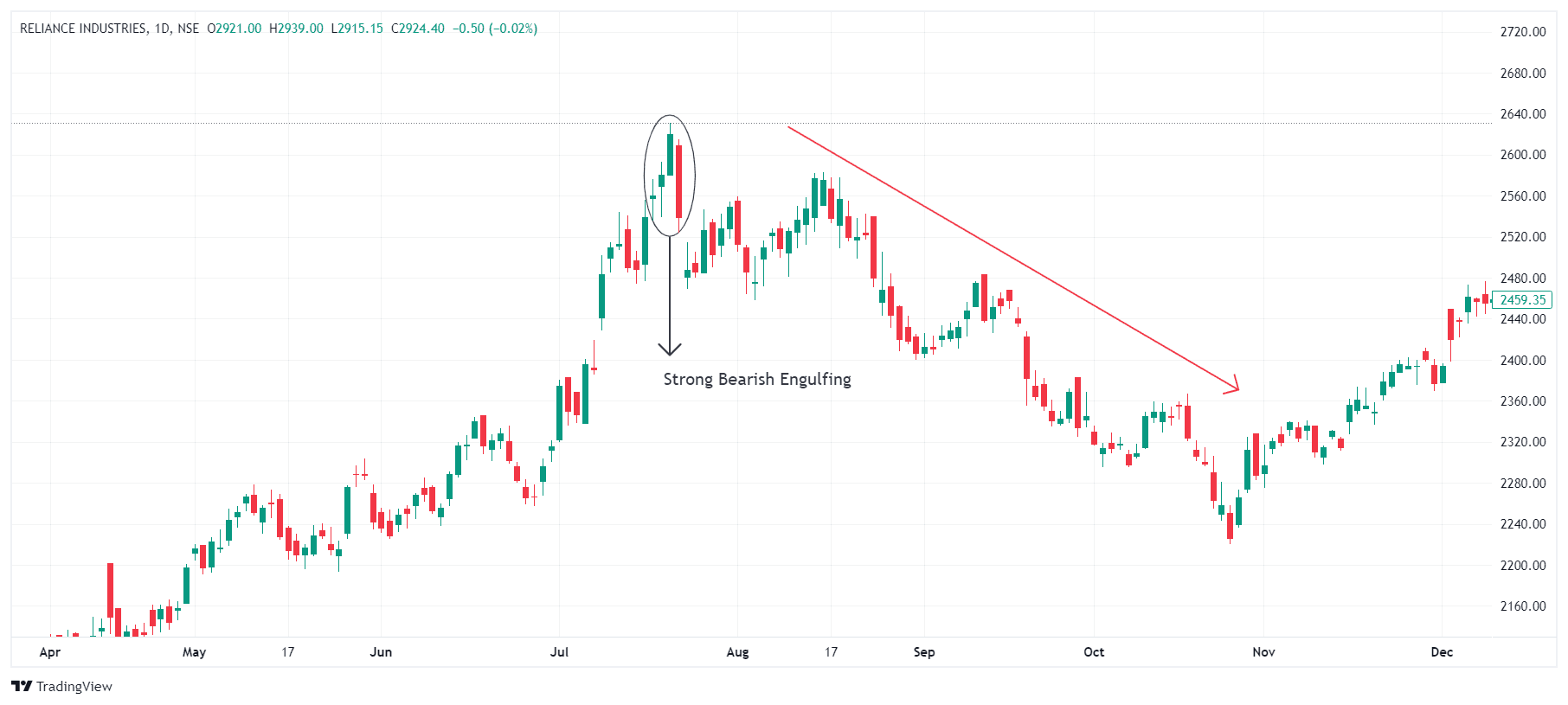 Example: Bearish Engulfing in Reliance Industries