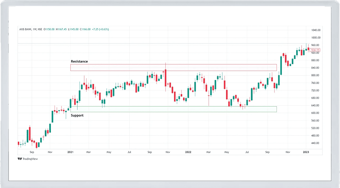- Resistance Level: This is the price at which a stock tends to stop rising because sellers begin to dominate. For Axis Bank, ₹840 is the resistance level.