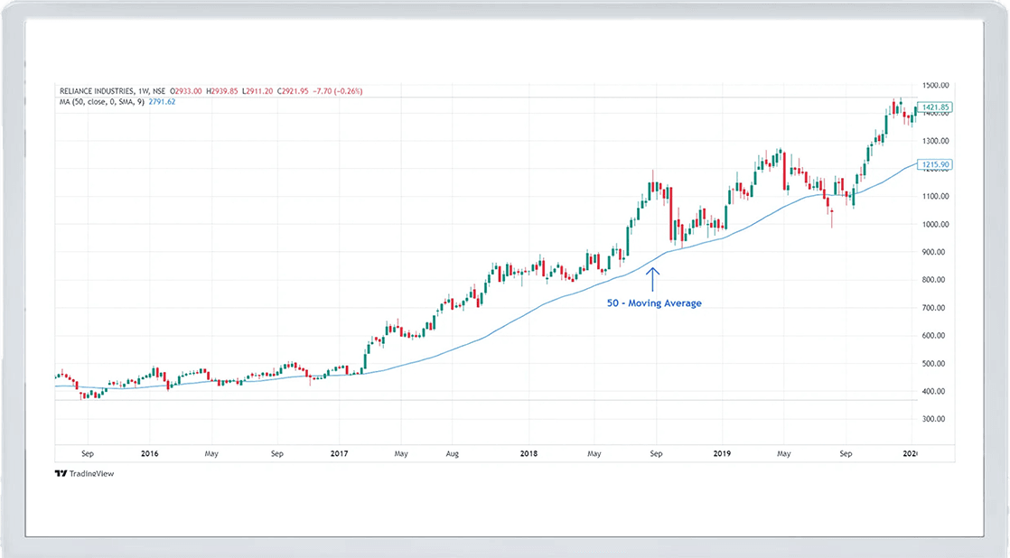 A moving average smooths out price data over a specific period, such as 50 days, and helps traders identify the overall trend. If a stock’s price is above its moving average, it signals an uptrend.