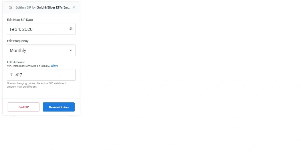 - Click on Edit SIP >>> make the changes in SIP date, Frequency & Amount