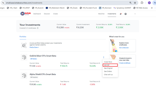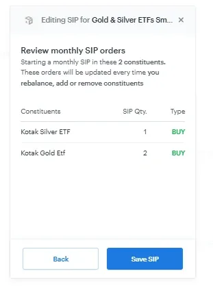 Yes, you can modify a smallcase SIP created on Kotak Securities, where you can only modify SIP details like the following: