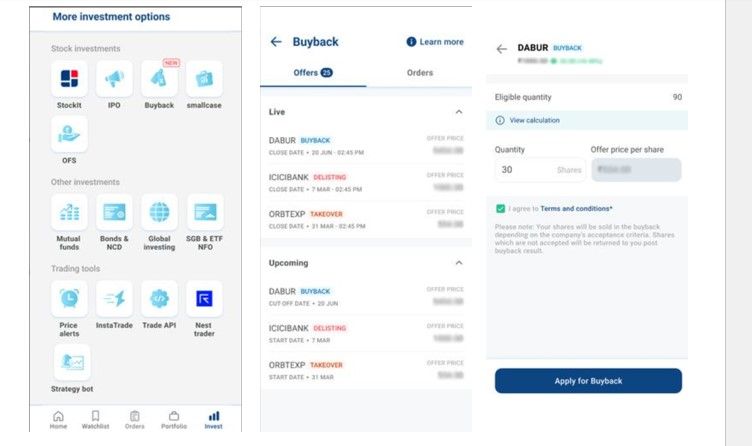Step 1: Navigate to Invest > Buyback