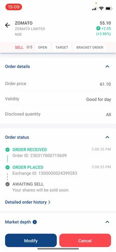 - You can modify the Stoploss trigger price and/or the Target price from the “Open orders section”, By clicking on the individual entry and then selecting the “Modify option”.