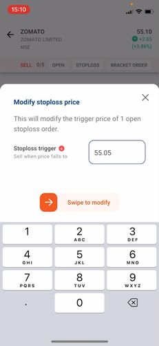 - For example, Modifying the stoploss price at Rs. 55.05 to hit/trade the stoploss leg order.