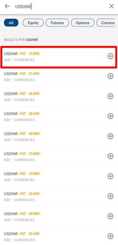 - In the search bar search the specific contract that you want to trade in