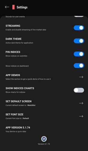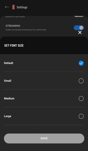 How can you adjust the font size on the app?