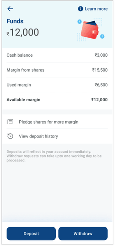 The amount of margin available in your funds section under Available margin can be used to trade in F&O.