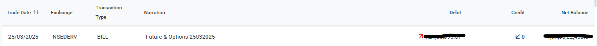 Old Ledger Sample margin entry for trades done on 25th Mar 2025