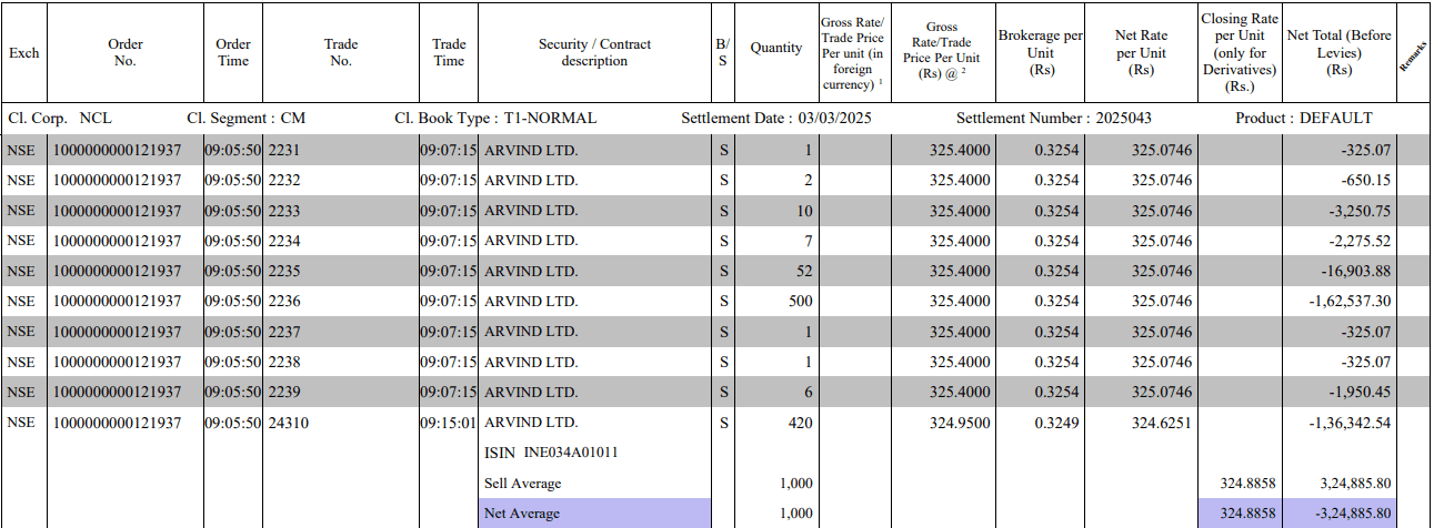 - Sell Average: Closing rate for all sell transactions. Quantity column will contain sum of all the quantities bought on T day.