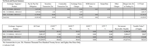 Pay In/Pay Out Obligation: (Inclusive of brokerage & exclusive of other charges levied)