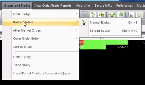 Basket Orders - This is used to place bulk orders in one go. You can create a file in txt or csv format with the orders and directly upload it into the system or add multiple scrips and place the orders.