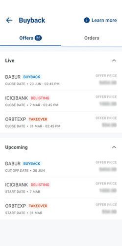Buyback-It’s a corporate action in which a company buys back its shares from the existing shareholders, usually at a price higher than market price. You are eligible for a buyback if you hold stocks on the cut-off date in your account.